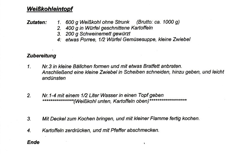 Meine Frau kocht morgen für 2 Tage und 2 Personen einen Eintopf (Erbsensuppe).
