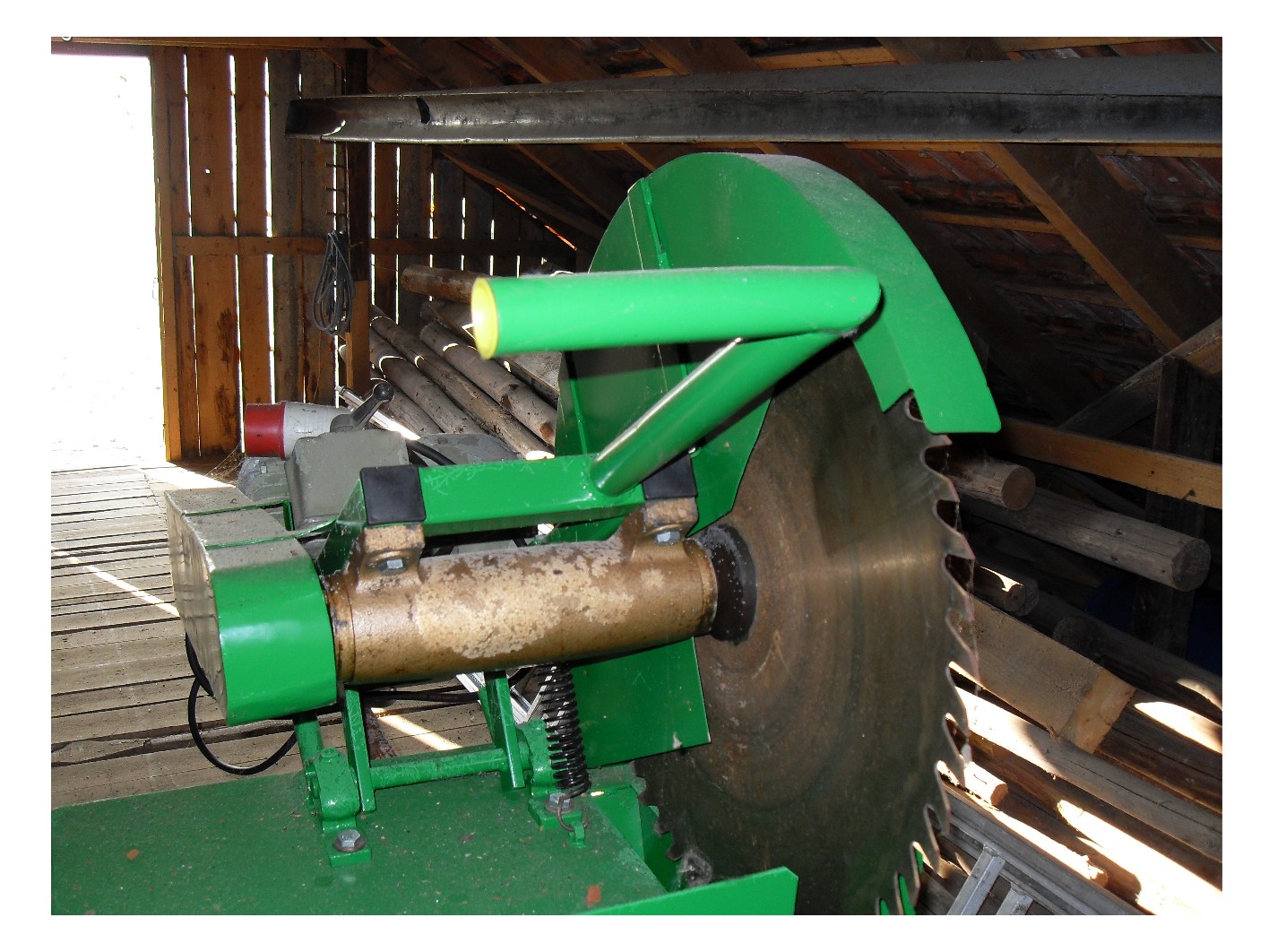 Hier meine verspochenen Bilder mir taugt diese Kreissäge sehr überhaupt wenn ich lange Stämme damit schneide so brauch ich nicht den ganzen Stamm immer bewegen wie bei einer Wippsäge.