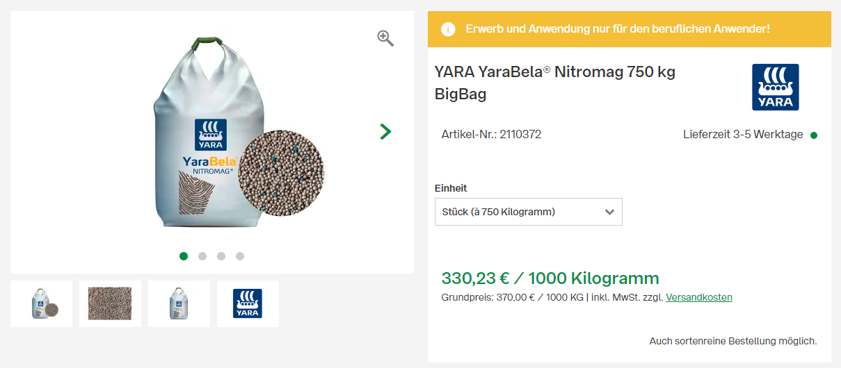 Für die mineralische Düngung nach der Güllegabe in dieser Saison würde ich fast zuschlagen. Wenn Du ihn nicht mehr brauchst heuer, dann würde ich dem Preis weiter beim Fallen zusehen.