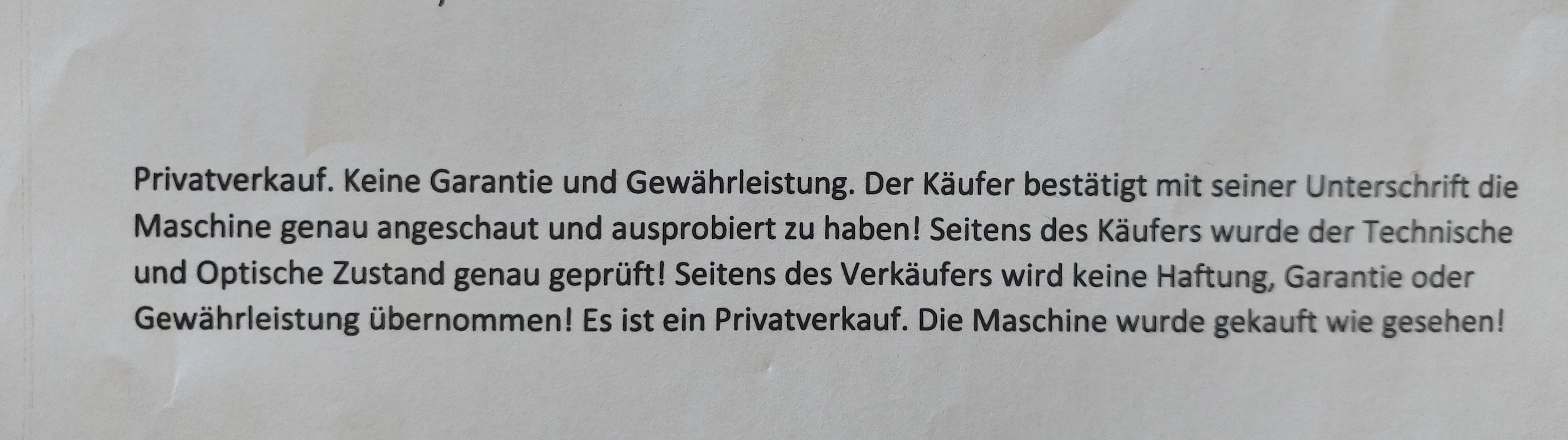 Hab eine Rückezange verkauft für 700 euro. Hab sie ihm ca 40% billiger gegeben wie ausgeschrieben weil sie bereits gerissen ist am Auslegerarm. Sie wurde ca 2 stunden angeschaut und auch getestet. Die zange hat eine kleine winde mit 30m drauf. Diese wurde wohl schonmal gekürzt und hat jetzt nur noch 24m was ich nicht wusste, hab sie selber gebraucht gekauft. Das ist ihm daheim dann aufgefallen und jetzt will er siw zurückgeben.