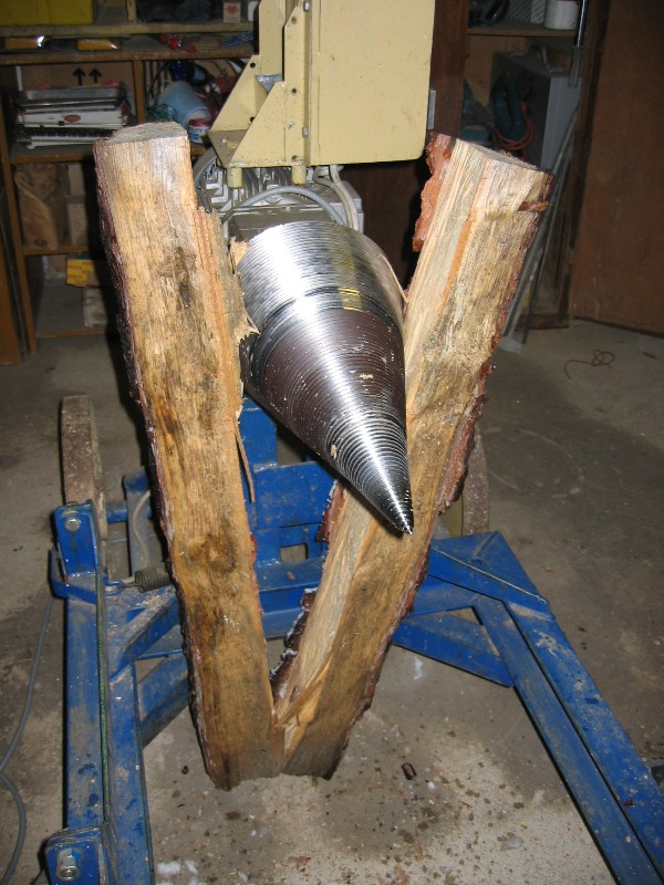 hier ein Bild eines Spaltkegels, der sich ins Holz reindreht...