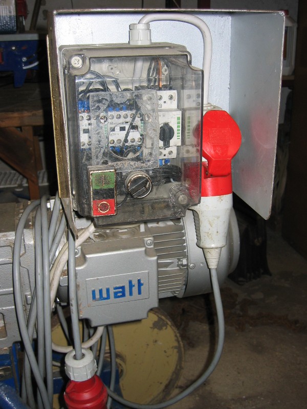 Mein Vater hat vor ein paar Jahren selbst einen gebaut. Mit einem 3kW Elektromotor (97 U/min) und eigenem Schaltkasten für vorwärts/rückwärts. Außerdem hat er einen Sicherheitsbügel am Rahmen angebracht, der, wenn das Bloch drüberspringen sollte, sofort den Spalter anhält (Kontakt mittels Feder).