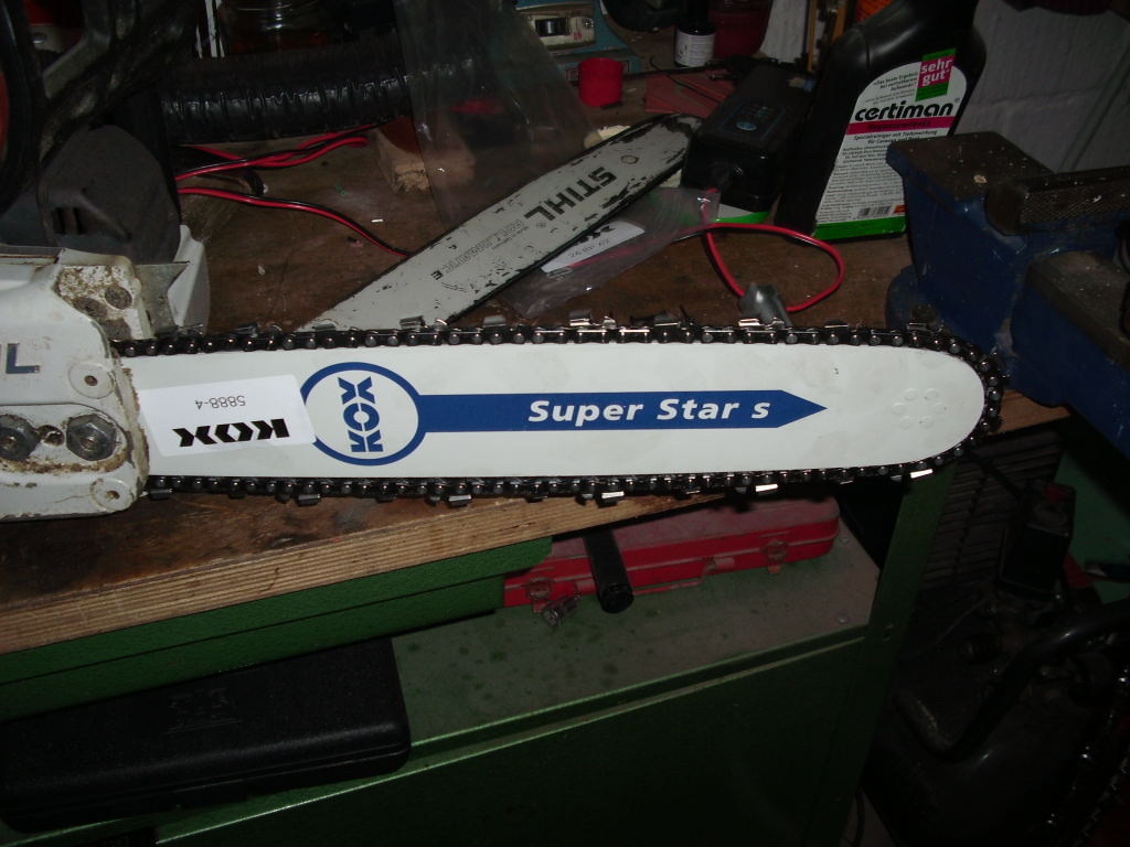 Profisägen (Stihl Ms 260, 361, 441 usw.)gesehen.