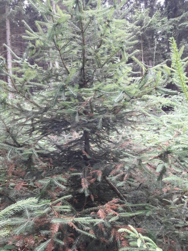 Es gibt ja zwei arten vom Borkenkäfer den Kupferstecher und den Buchdrucker. Ein Forstarbeiter hat mir gesagt der eine arbeitet sich von oben nach unten ( deswegen auf den Wipfel auch immer schauen) . und der andere von unten nach oben.