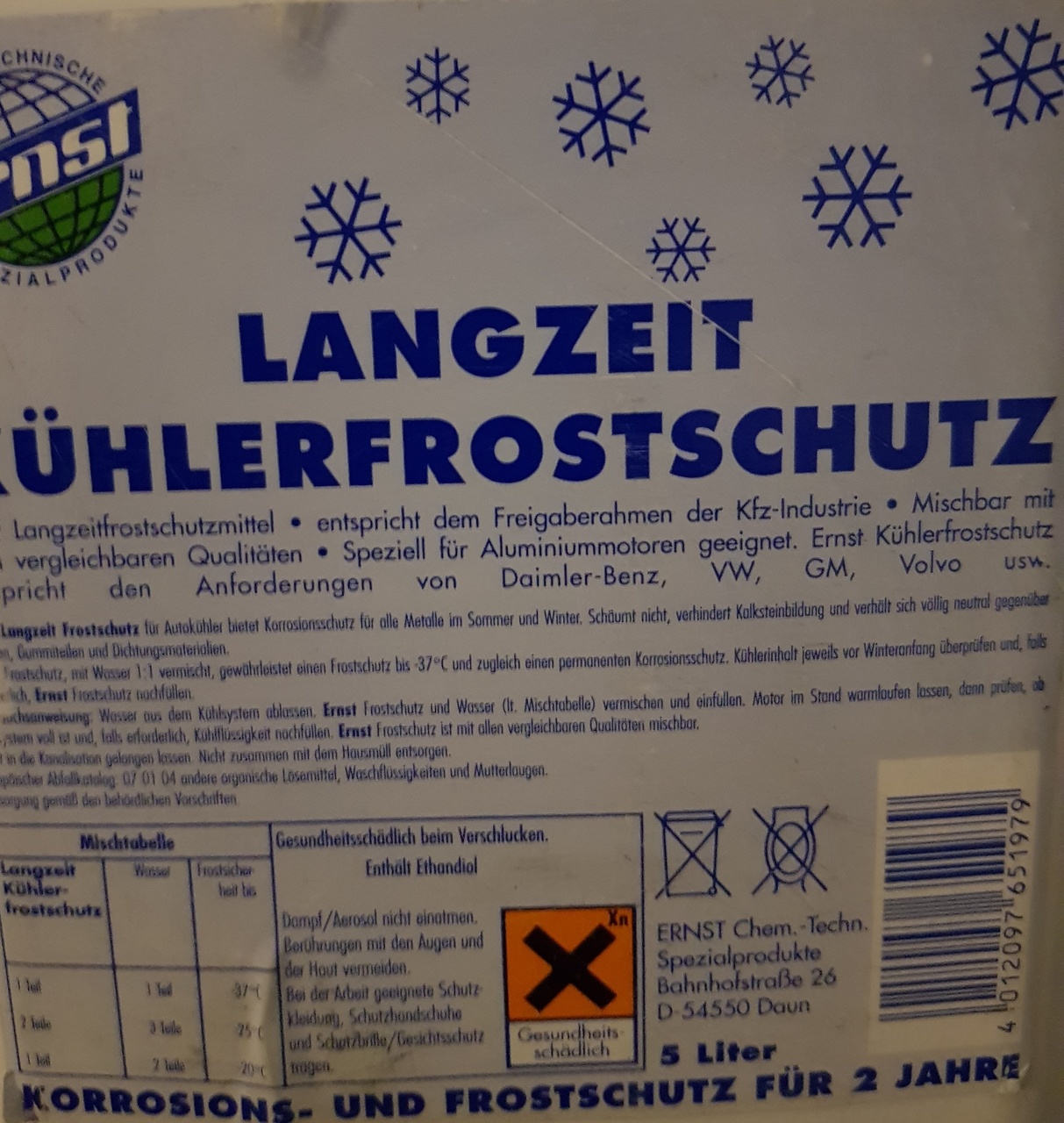 es geht um den Kühlerfrostschutz von meinem Schlepper,