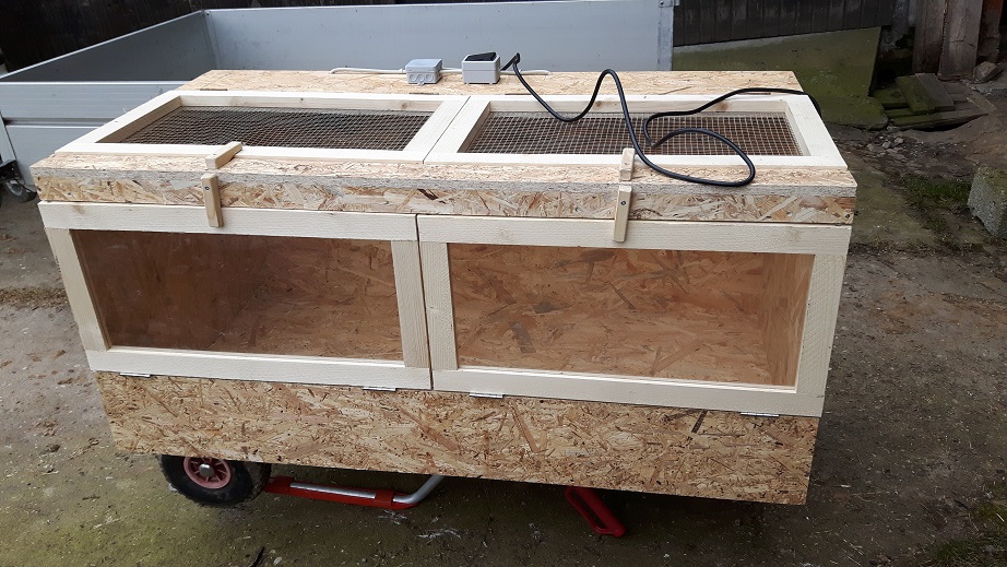 Die Küken schlüpfen vorausichtlich am Osterwochenende . Eigentlich wollt ich ja auch so ein Terrarium , hatte aber leichte Bedenken das es rechtzeitig da ist . Und etwas billiger war der Selbstbau auch.