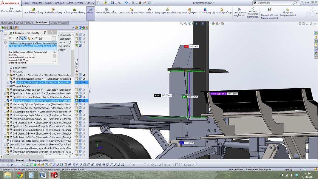 Die Verstellung des Spaltkreuzes würde ich nochmals überdenken. Der Winkelhebel gefällt mir auch nicht. Solche Problemstellungen löse ich sehr gerne mit dem Prinzip der Anlenkung an der Baggerschaufel. Das sieht filigran aus und ist extrem stabil.