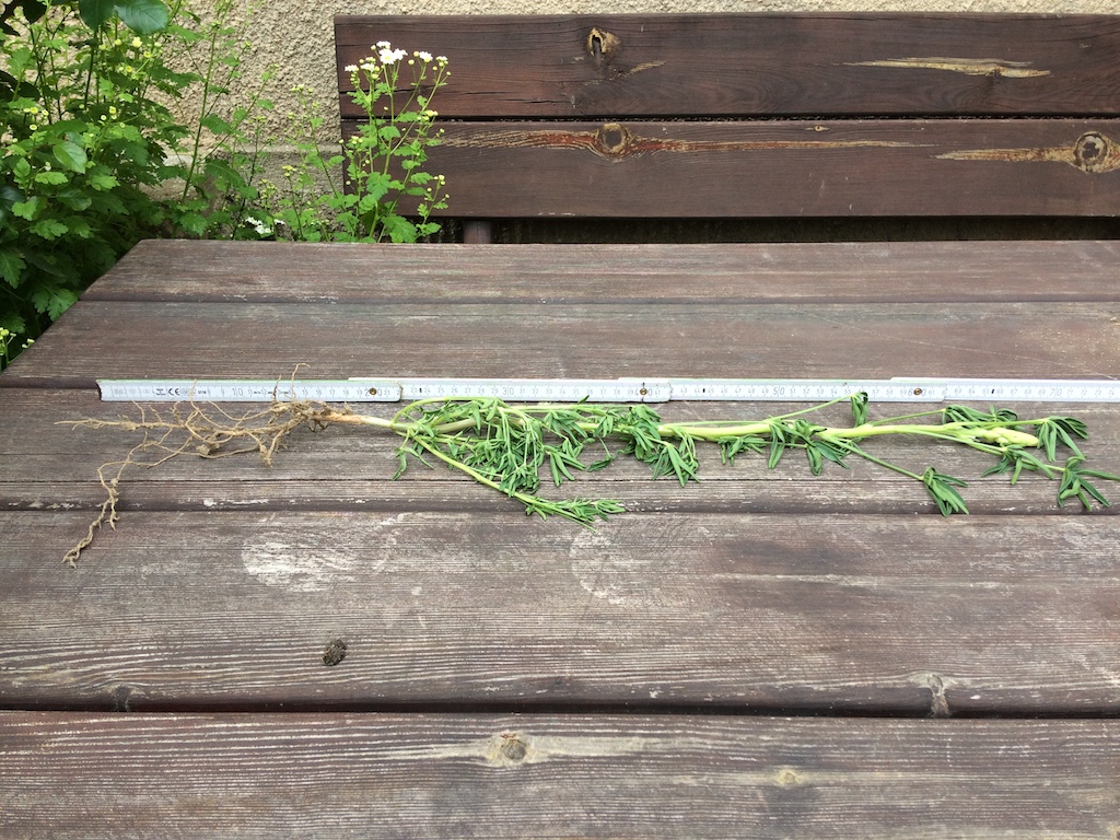 Wie sich die einzelnen Pflanzen in der Lupine entwickeln werde ich beobachten und sie evtl. mähen bzw. mit dem Freischneider mulchen.