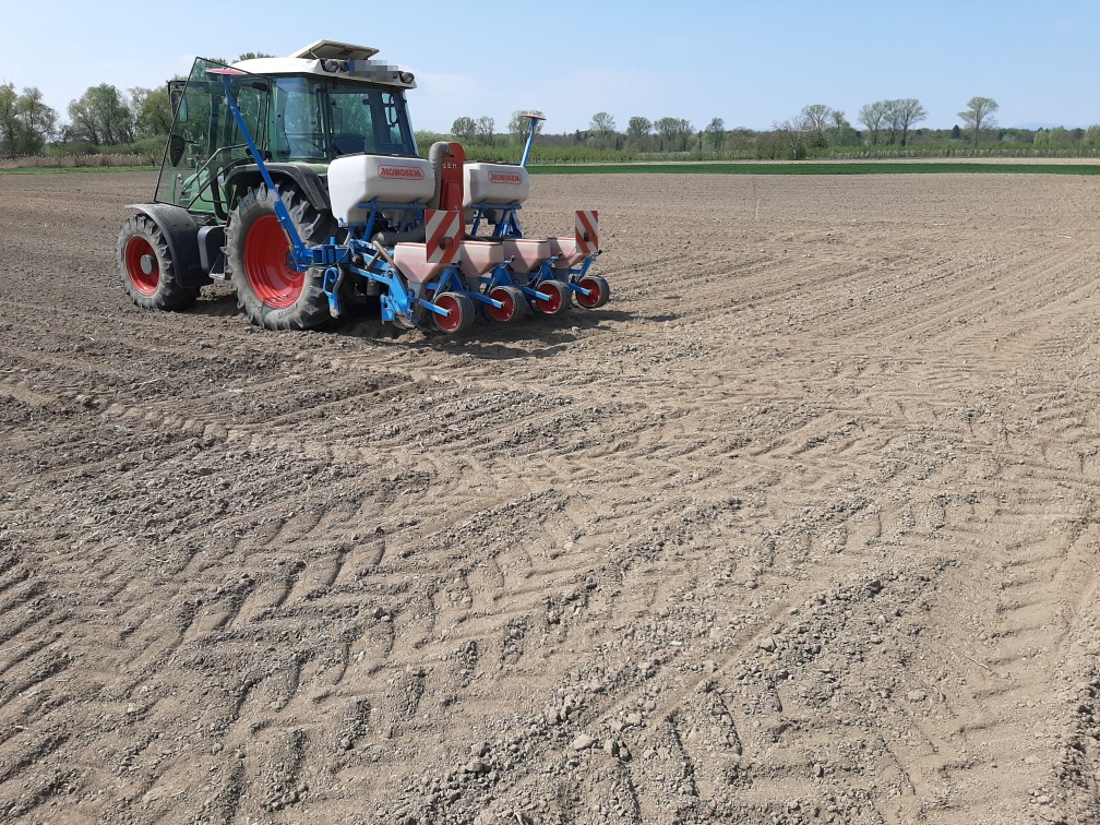 Um das Korn noch in den einigermaßen feuchten Saathorizont zu bekommen, säen wir im Moment auf ca. 5,5 cm Tiefe.