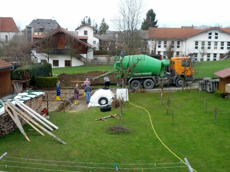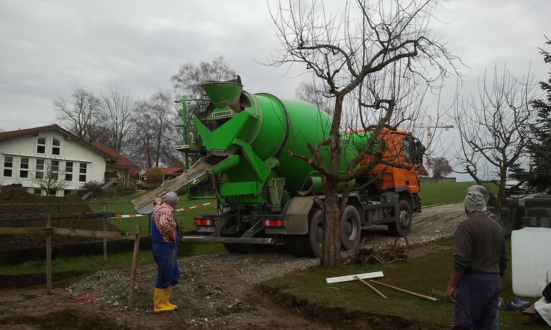 Kormoran2 hat geschrieben:Ich kann mir den Fertigbeton auch selbst beim Mischwerk abholen, sind nur 9 km. Da muß ich mich dann zwischen die ganzen Beton-Bomber in die Warteschlange stellen bis ich an die Reihe komme. Ein Viertel m³ ist die kleinste Abgabemenge. Mit Verzögerer 2 € teurer. Der Beton bleibt dann 3 Stunden verarbeitbar.