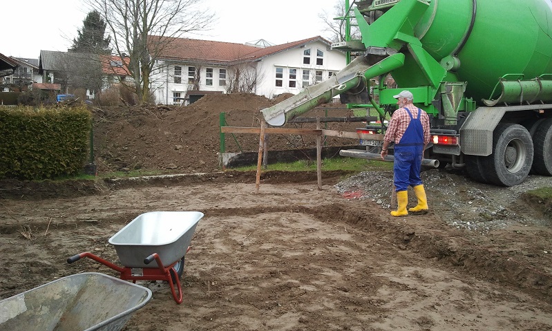 Früher habe ich auch noch den Beton selbst angerührt, mit der Hand, völlig ohne Mischer, ganz wie im vorvorigen Jahrhundert.