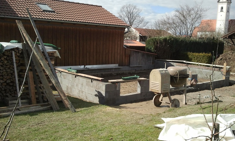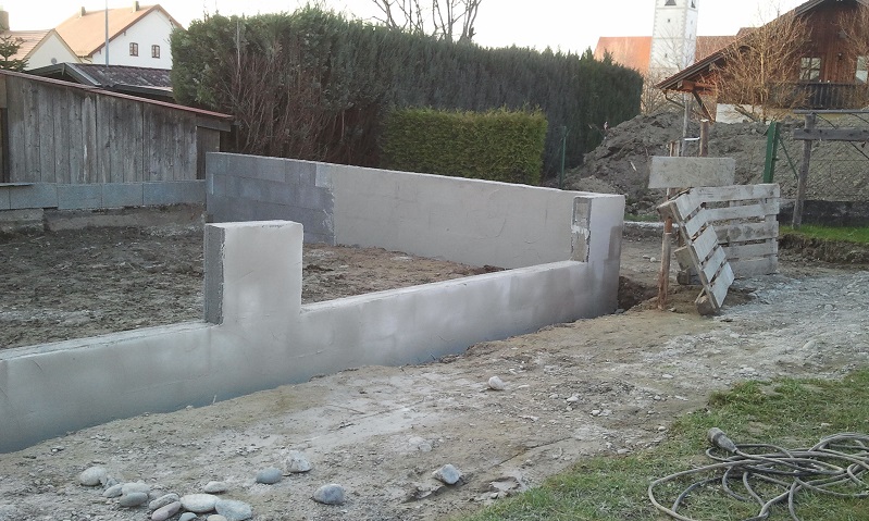 Richtig, die Steine sind gesetzt (siehe Bilder) Eisen ist drin und morgen kommt der Beton rein.