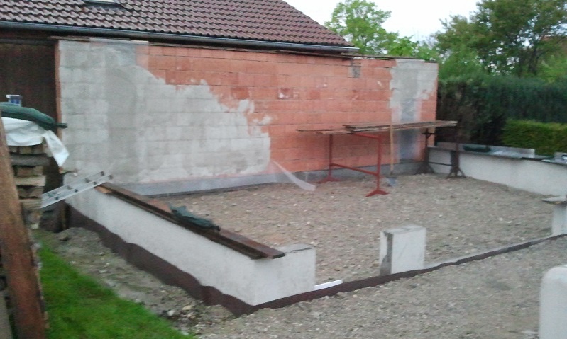 Zwischendurch war ein Maurer verletzt, also blieb die kleine Firma gleich ganz fern. Dann diese und jene Verzögerung. Es leppert sich.....
