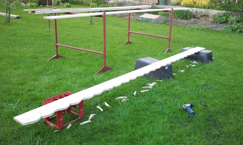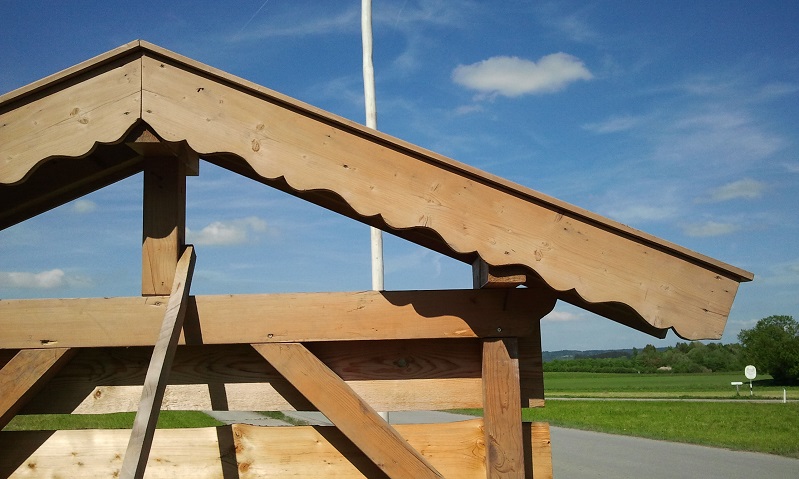 . Hier würde einen die ganze Ortschaft auslachen, absolutes No-Go. Dat Dinges wird mit Brettern ringsum vernagelt, dann hat das Hand und Fuß. Die Brettchen kommen auf die Stirnflächen der (wie heißen die Dinger?) Pfetten?!... Guckt man von vorne an so ein Bayrisches Luxusbauernhaus, über den Geranien am Holzbalkon, unterm Ortgangbrettl hängen die Dinger... Sind Impregnierte Bretter nicht so grün wie die Telefonmasten? Das läuft dann ebenfalls unter No-Go. Soll ja nach was aussehen. Wir haben lauter so Spinner in Gemeinderat und -verwaltung, bei uns steht in der Bauverordnung, dass eine Garage oder Carport ein ziegelgedecktes Spitzdach mit min. XX° Neigung haben muss, Maschendrahtzaun darfste hier auch nicht, obwohl es hier keine oberbayrischen Prachtbauten gibt, nur ganz normale Häuser, wie in jedem anderen Kuhkaff auf diesem Planeten auch.....