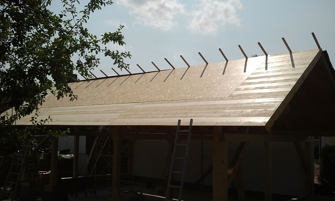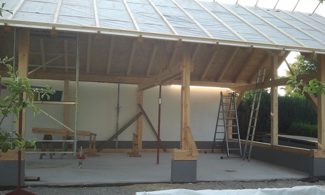 Tolle Hütte. Ich habe mir die Arbeit des Hobelns nicht gemacht und den Giebel sägerau gelassen. Heute ärgere ich mich und die Spinnen freuen sich.