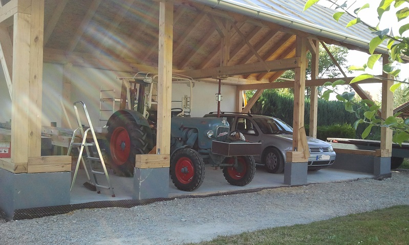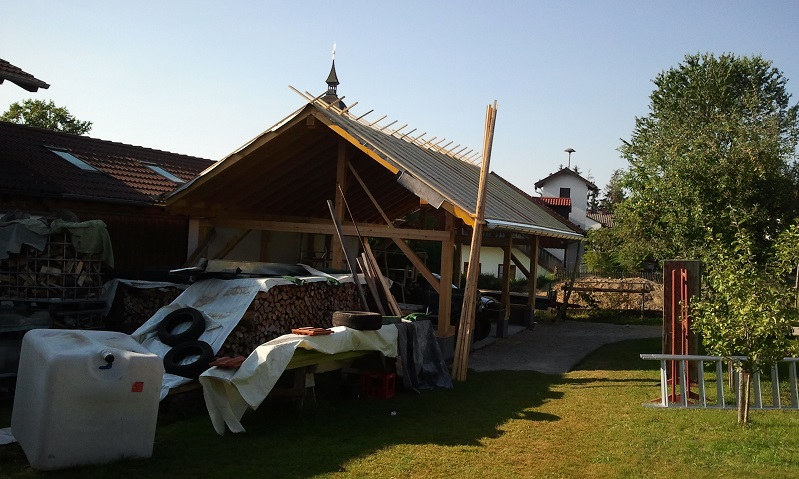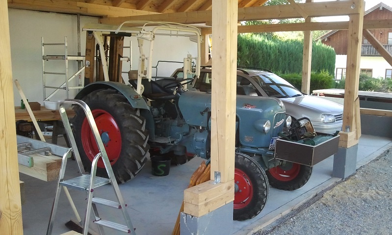 Positionier doch mal die Eicher in der Hütte und mach Fotos. Wenn das Dach drauf ist sieht man die Dimension nicht mehr.