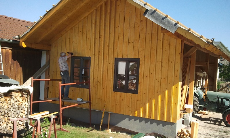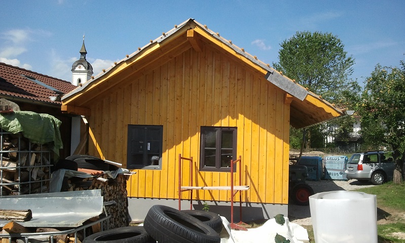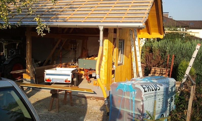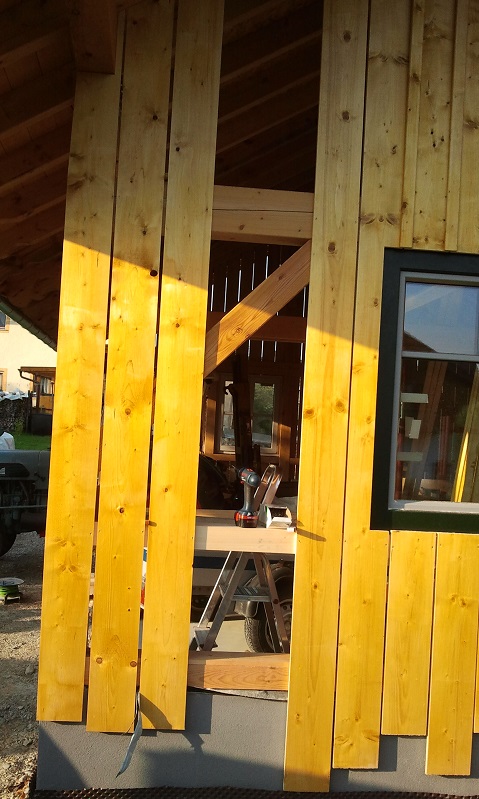 Bretter sind jetzt alle dran und die Decklatten habe ich gestern grundiert. Heute werden gut 200lfm Latten gestrichen.
