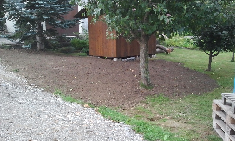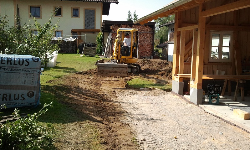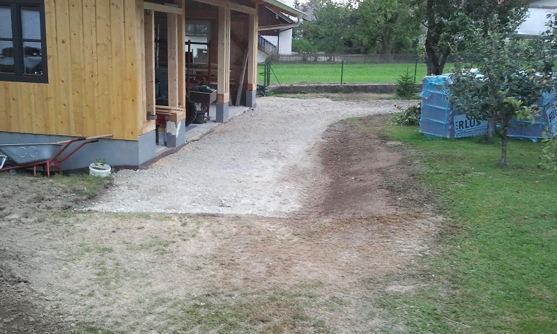 Ugruza hat geschrieben:Der Schotterstreifen vor deiner Hütte ist mMn viel zu schmal, um hinein fahren zu können musst du über die Wiese und das gibt Schlammschlacht wenn es mal regnet. Außerdem wird es dir deine neu planierte Erde beim ersten Regen in den Schotter schwemmen oder hast du noch Asphalt oder Pflaster geplant?