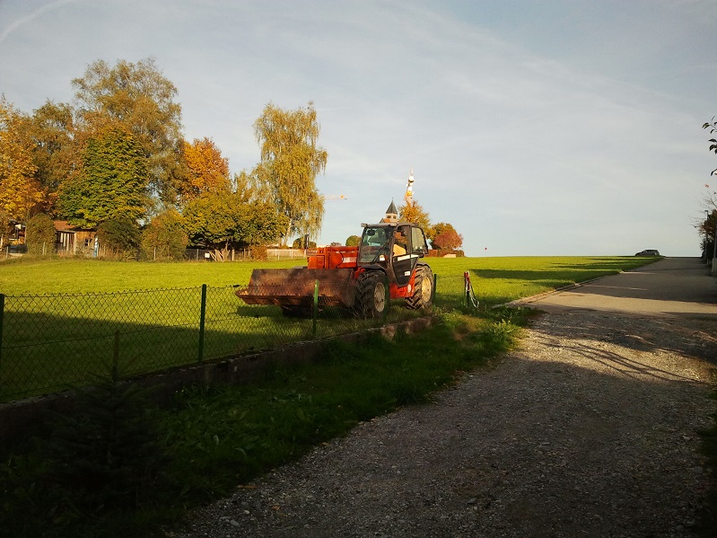 Gebraucht habe ich für diese Aktion mit 2 Personen etwa 2 Tage incl. Gerüst Auf- und Abbau, Türe machen, alten Türbänder entrosten und wieder neu lackieren, Mauerabdeckung neu gemacht und die Mauerkante gerade aufgeputzt. Den Bretterverschlag hatte ich auf etwa 6 Stunden droben.
