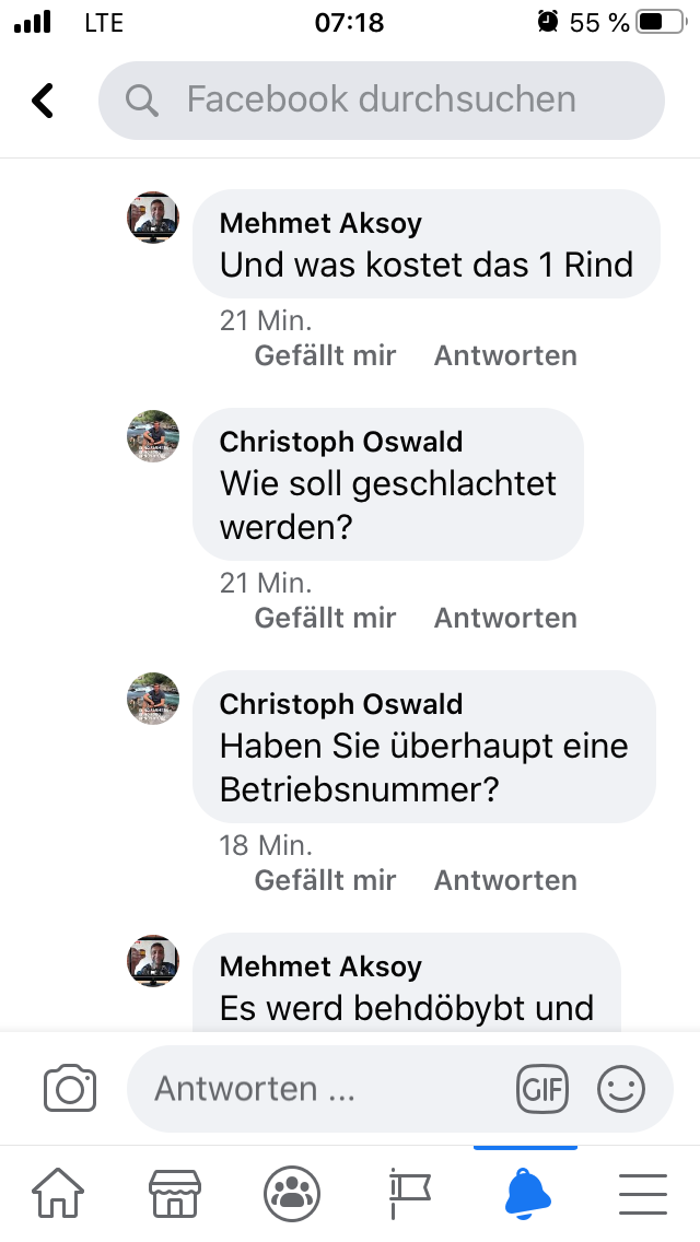 Man inseriert irgendwo ein Rind zum verkauf und irgend jemand meldet sich, der es schlachten möchte.