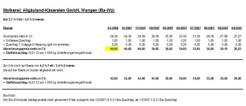 ich habe den gleichen milchlpreis wie "Gress" weil ich auch zu meggle Wasserburg liefere.das problem ist doch eher das keiner so richtig raus-