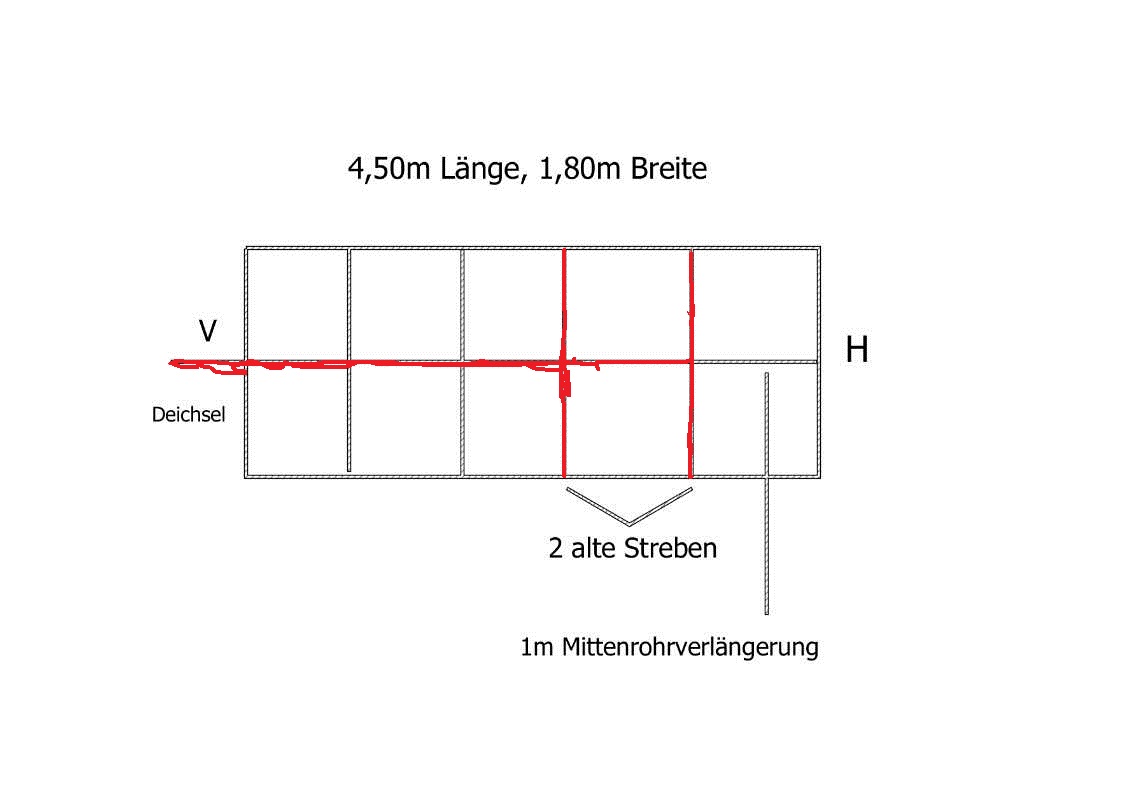 Die vordere und hintere Strebe muß ich ja eh die gleiche nehmen wie die Seitlichen.
