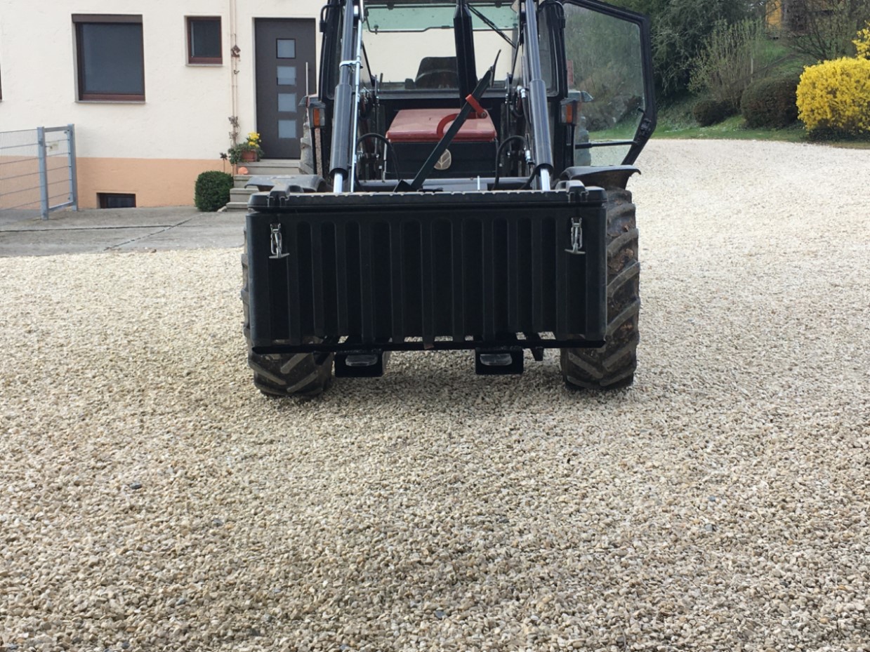 Habe in einen Frontlader investiert (Hauer POM-R 90). Steht noch beim Händler, weil ich aufgrund OP gerade nicht fahren darf. Wenn ich die Motorsägenkiste wie bisher an die Fronthydraulik anhänge, kann ich den Frontlader nicht benutzen bzw. muss erst die Kiste umständlich abhängen. Kiste hat ein angeschweißtes Dreieck. Jetzt überleg ich mir wie ich die Kiste am besten mitführe. Habe mir überlegt, einen Euro-Dreipunktadapter zu kaufen (gibt günstige Angebote) oder an den Träger der Kiste Staplerlaschen anzuschweißen. Wie macht ihr das?