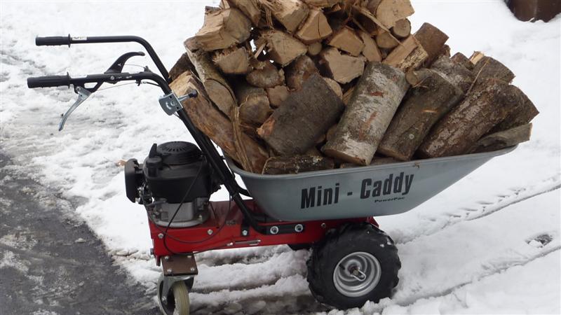 Wir schaffen mit unserer Motorbiene Steigungen von 35 Grad und dieses mit einem Gewicht von ca. 120 kg. Von 90 cm langen Scheiten a' 30 Kilo bekommen die Holzkollegen ca. 3 bis 4 auf den Schweizer Aufsatzrahmen.