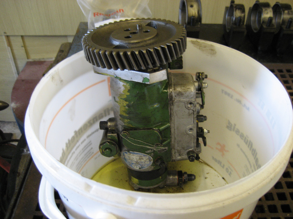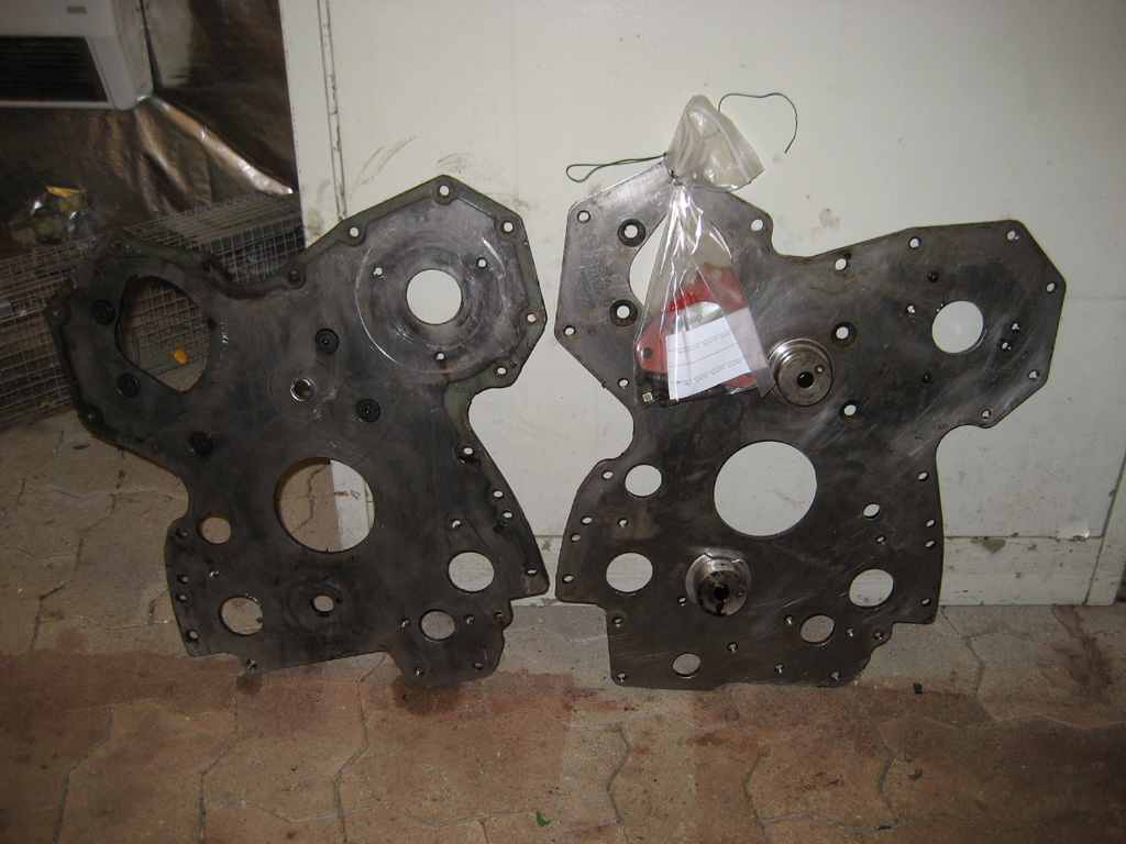 Kaum denkt man das die große Ersatzteilbestellung für den Zusammenbau platziert werden kann, tauchen plötzlich neue Schwierigkeiten auf. Heute habe ich sogar einen alt JD-Mechaniker die "AHA-Falten" auf die Stirn gezaubert. Ven dem guten Mann hatte ich die Tage ein "Frontblech" gekauft, auf dem die ganzen Zahnräder laufen und es später wieder hinbringen müssen, weil es ein versetztes Lochbild für die Einspritzpumpe hatte.