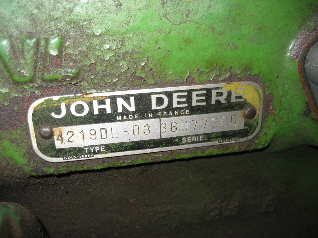 Bei ROTO DIESEL AR85710 (ersetzt AT27917) wenn die Traktorseriennummer (auf Tragbock) von einem L gefolgt wird (Motorseriennummer bis 189967)