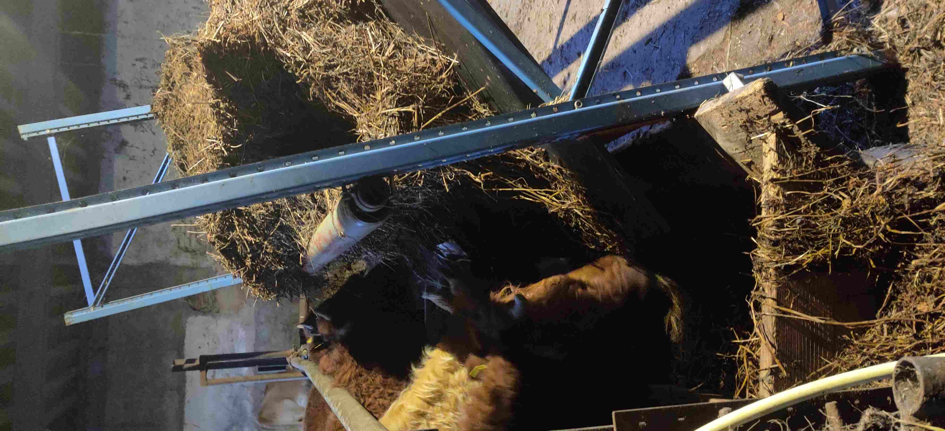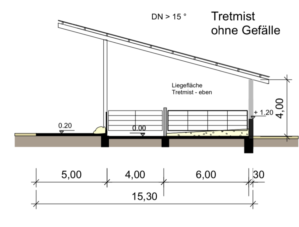 Jörken hat geschrieben: Nun ist das System ganz einfach planer Boden, nach "Normanischen Tretmist" hinten eingestreut. Das spart die Treppen runter in den Stroh-Tieflaufbereich, es gibt auch keine Schwelle oder Kante. So ist alles viel leichter zu Entmisten, nichts ist im Weg. (eine Kante sollte gebaut werden, wenn man mit Schieberbahn entmisten will). Mir ist lieber die Tiere müssen halt mal eine Stroh-Mist Rampe rauf als über Betonstiegen runter. Der Fressgang reicht in einem kleinen Bestand mit ca 3 Metern Breite, wenn die Tiere in die Liegefläche ausweichen können. Ob bei 5 Tieren der Mist wirklich wandert, oder sich eine Mistmatraze aufbaut ist doch egal. Hauptsache der Raum ist hoch genug, gut belüftet und mit dem Traktor oder Hoflader entmistbar.