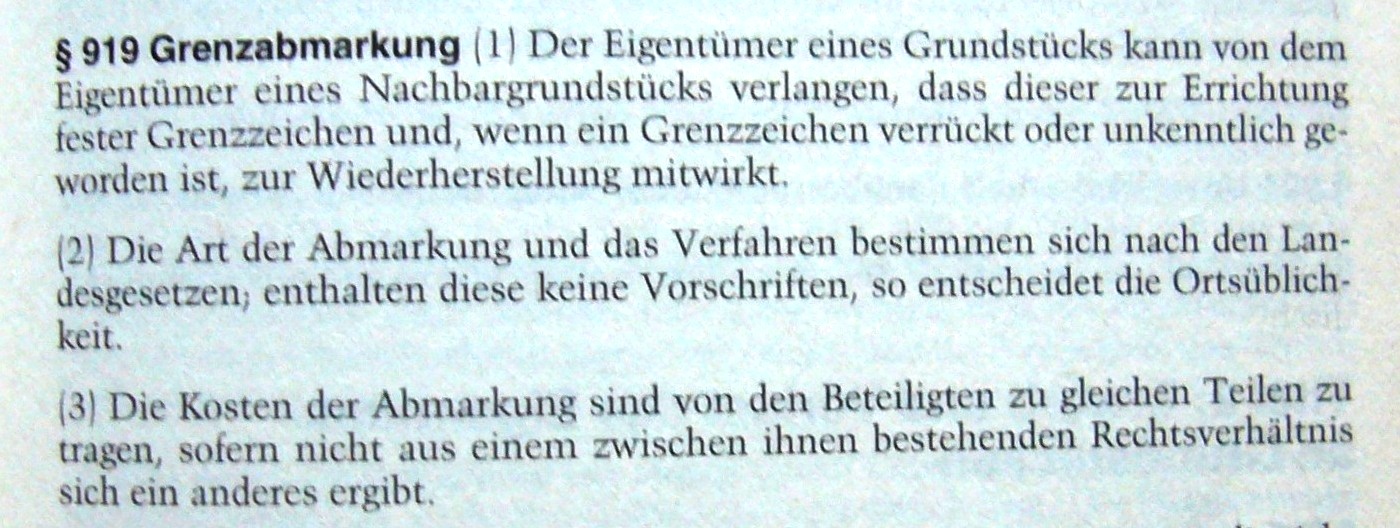 Eine Grundstücksgrenze bzw. Grenzsteine sind seit Jahren nicht mehr lt. Katasteramt vorhanden.