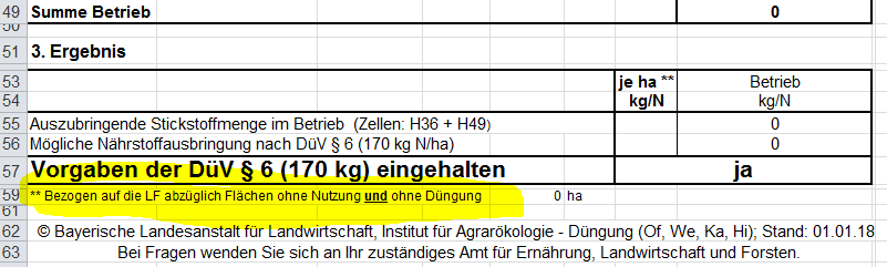 Der Punkt :Bezogen auf LF abzüglich Flächen die weder landw. Genutzt werden, noch gedüngt werden.