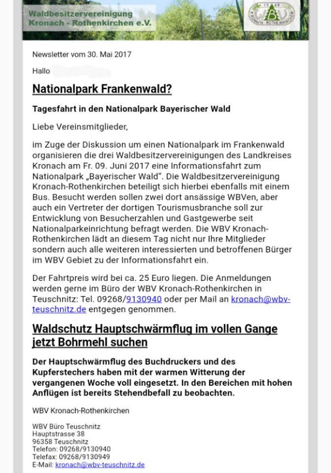 stenz hat geschrieben:Hallo, geplantes Treffen der Nationalparkgegner am Di 19:00 Hildner Neuengrün (ohne Gewähr).
