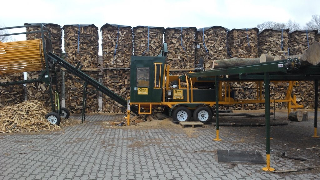 Und schon das kann nicht funktionieren. Bei den knappen Margen, die mit Brennholz zu erwirtschaften sind, kann man sich keine Maschine für 160.000 € oder Dollar - egal - erlauben, die zwei Drittel der Zeit nur Zinsen kostet. Sowas ist weit entfernt von jeglicher Wirtschaftlichkeit.