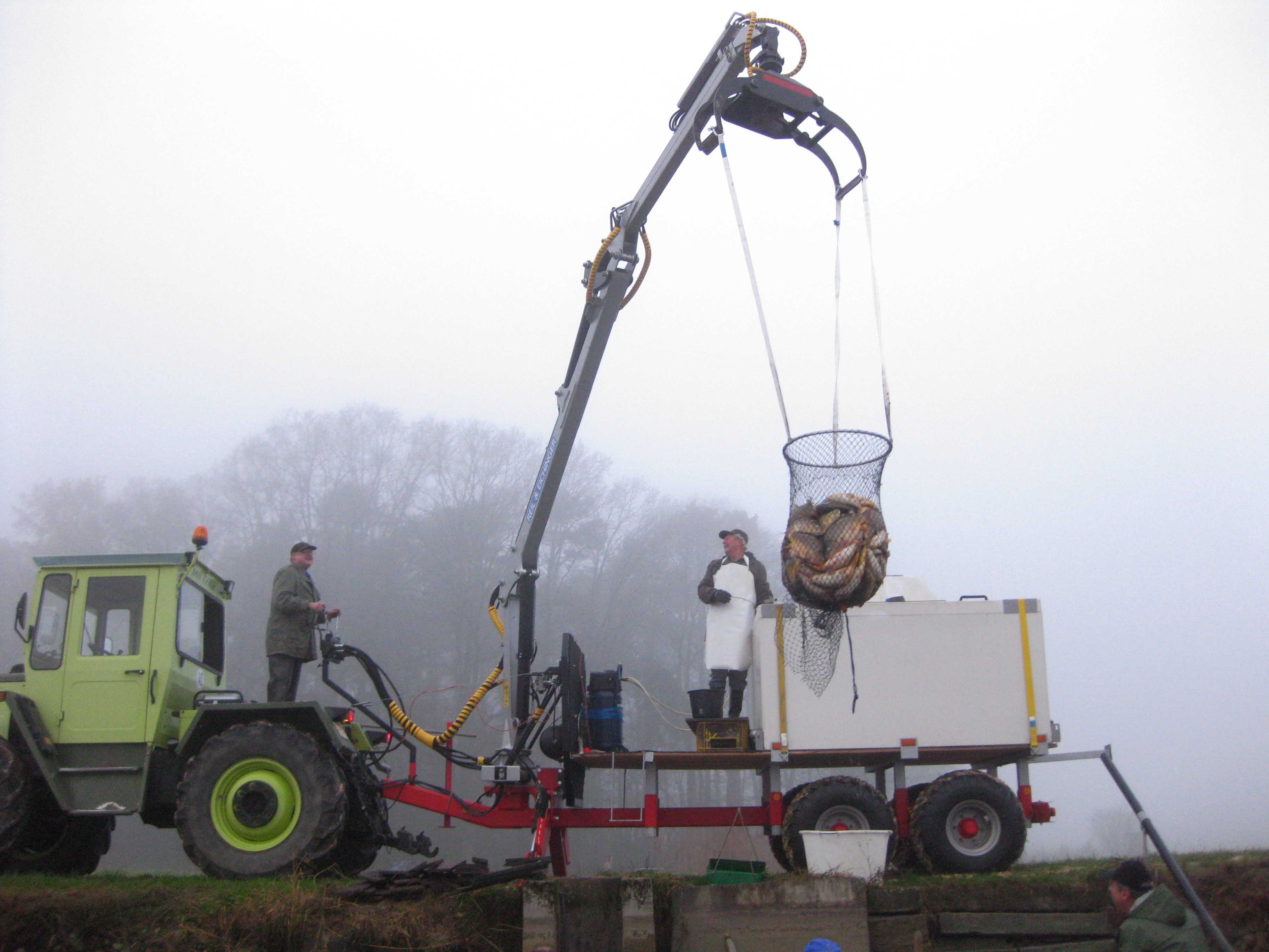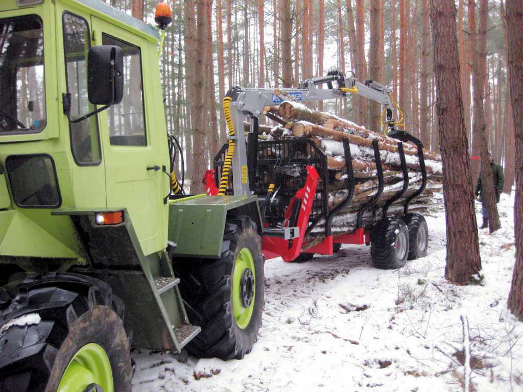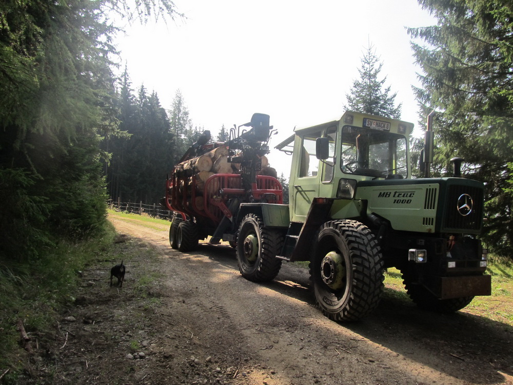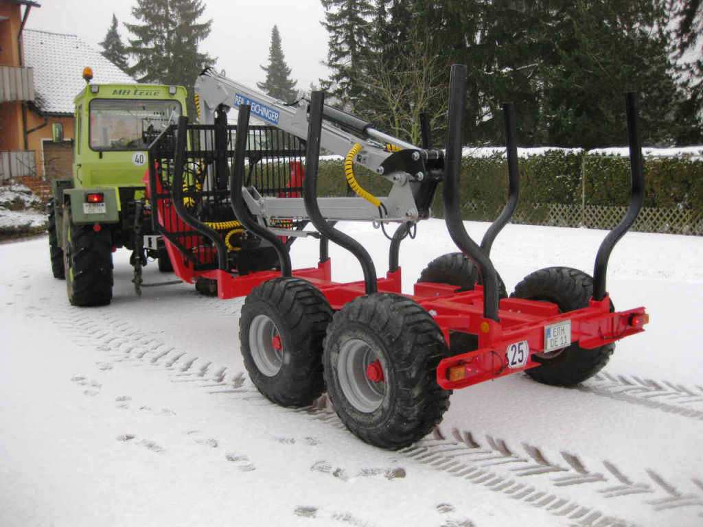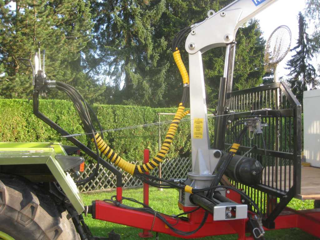 Es hat alles soweit ganz gut geklappt - Hydraulikpumpe vom MB Trac ist aureichend um den Kran im Standgas (ca. 700 U/min) zu bedienen. Ist dann zwar nur eine Funktion möglich, aber für einen Anfänger reicht das. Beim Abladen habe ich dann etwas mehr Gas gegeben (ca. 1000 U/min), dann ging alles schon etwas flüssiger ...