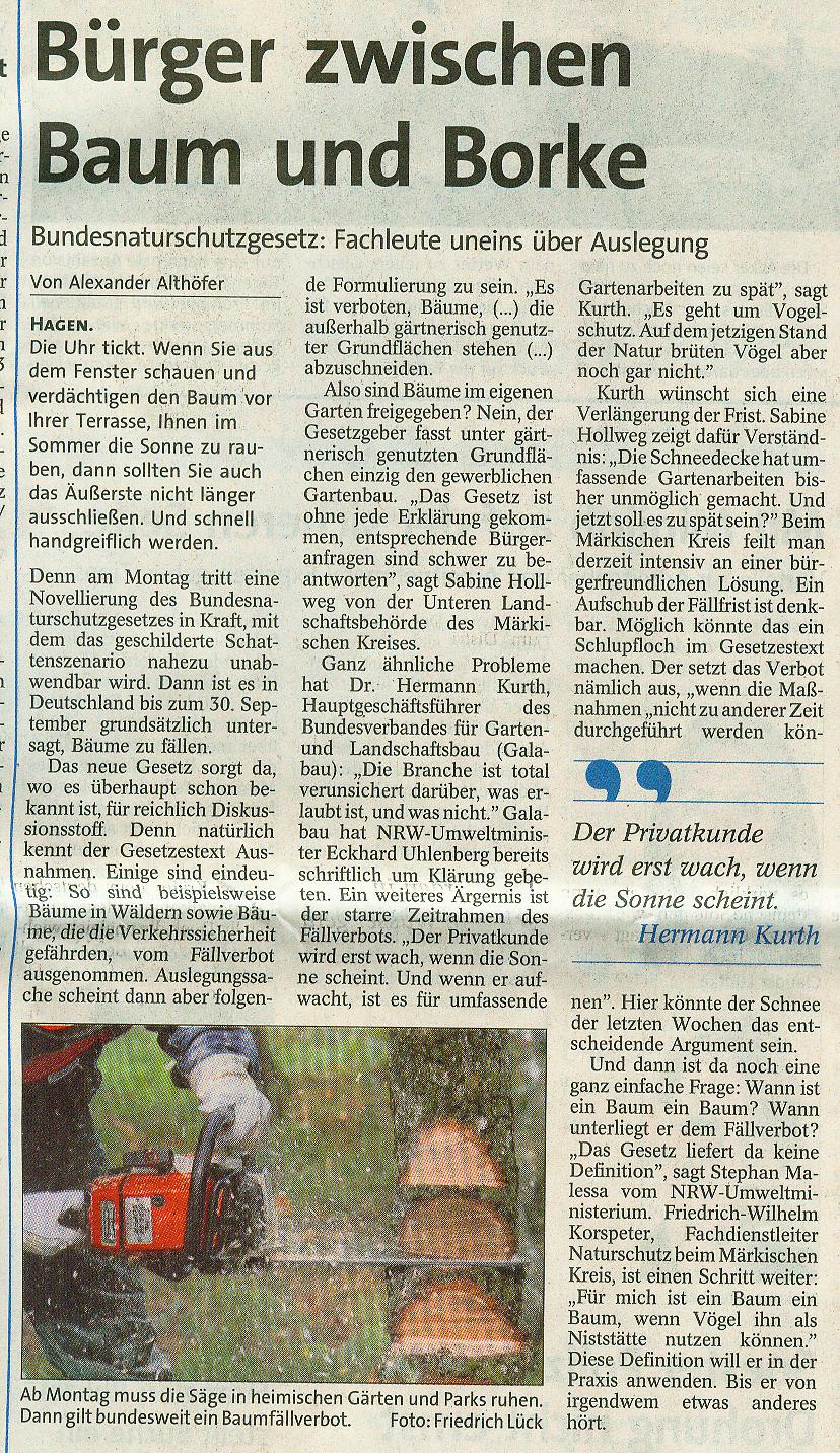WaldbauerSchosi hat geschrieben:versteh ich das falsch oder darf ab Montag keiner mehr in seinem Garten / Wald einen Baum fällen ???