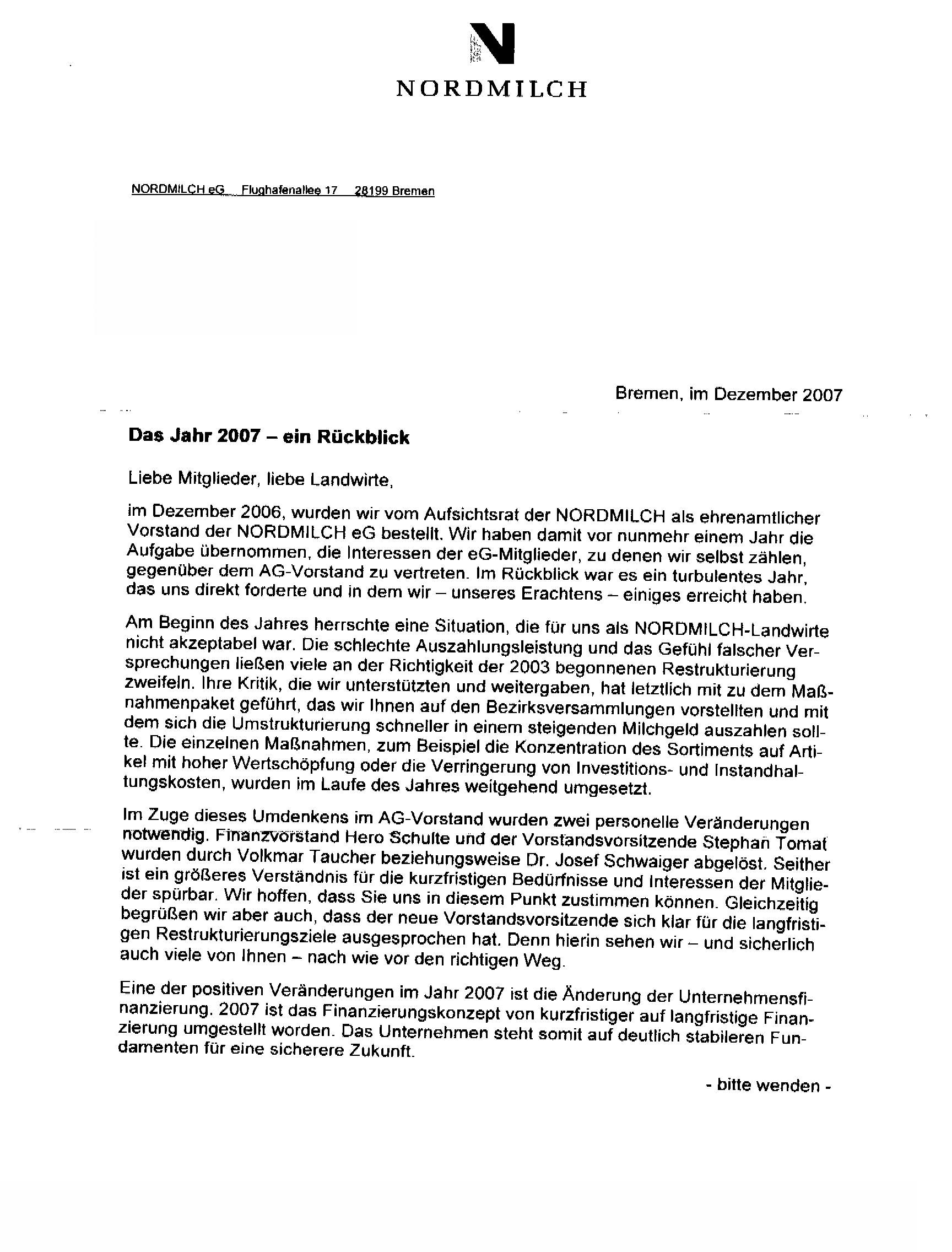 Achso, und was so ne Kündigungswelle auslöst hat man ja bei der Campina gesehn, und bei dem was die Nordmilch da letztes Jahr abgezogen hat von wegen 3 Cent weniger für Dezember als keiner mehr kündigen konnte...