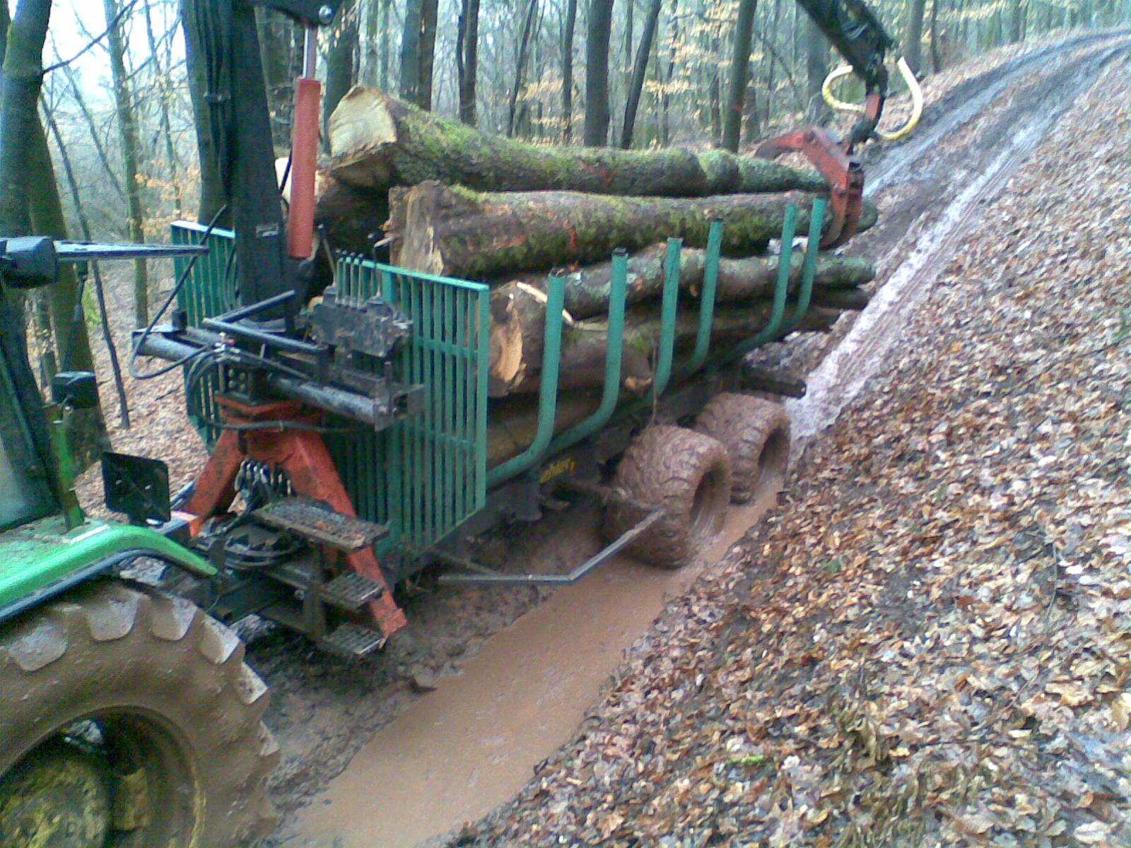 Die letzten Jahre wurde das Brennholz im Wald auf 1 m abgelängt und umständlich mit der Heckschüssel zum Hof transportiert. Mein 5 to Kipper ist aufgrund der Breite nicht für die engen Waldwege geeignet. Da ich auch noch ganzjährig einer geregelten Arbeit (z. Teil Wochened-Arbeit) nachkommen muss, der großteil an Waldbestand ca. eine halbe Stunde (mit dem Traktor) vom Anwesen entfernt ist und mein Vater (welcher den Betrieb führte) unverhofft vor kurzem verstarb, bin ich der Meinung, das ein kleiner/mittlerer Rückewagen für mich sinnvoll wäre. Er dient vor allem der Optimierung.