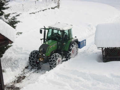 Rasenmäher (16PS ?) mit selbstgebauten Schneeschild. Vergiß es keine Chance, ich glaub nich mal mit Schneeketten zieht der durch, dat is was für Kunstschnee im Wohnzimmer. Geht definitiv gar nicht. Vom Schneeschild selber bin ich allerdings noch überzeugt, weiß einer wo ich günstig diese Gummilippe herbekomme ?