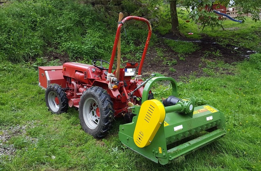 Haben nen kubota mit 15ps und dazu nen Schlegelmulcher 1,06m Breite mit Feinbechermesser.