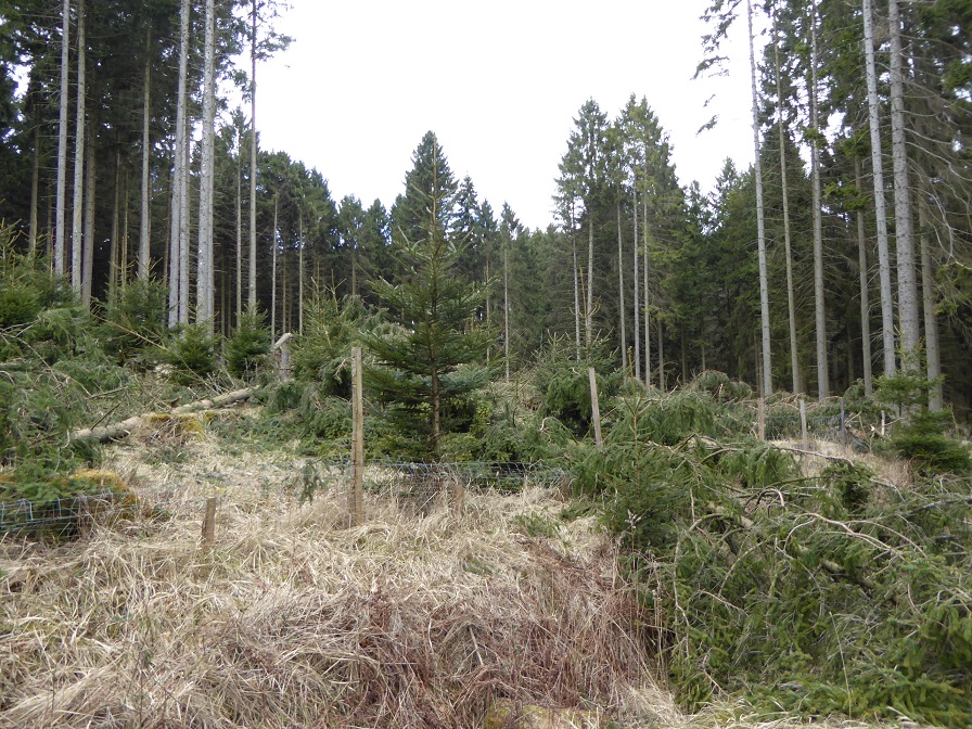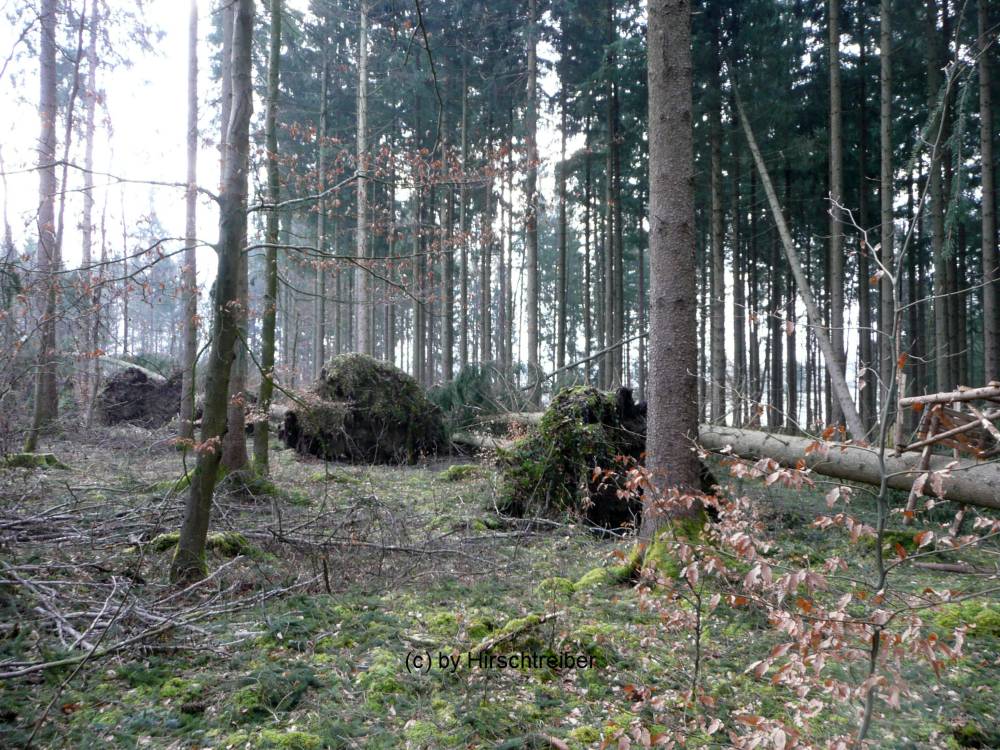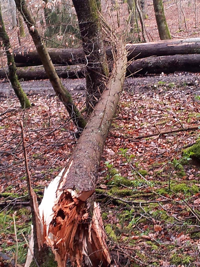 Aber man muss auch sagen dass die Bäume die umgefallen sind, teilweise älter als 70 Jahre alt sind. Damals hatte man es für richtig gesehen Fichten zu pflanzen. Auch die Naturverjüngung spielt hier eine wesentliche Rolle.