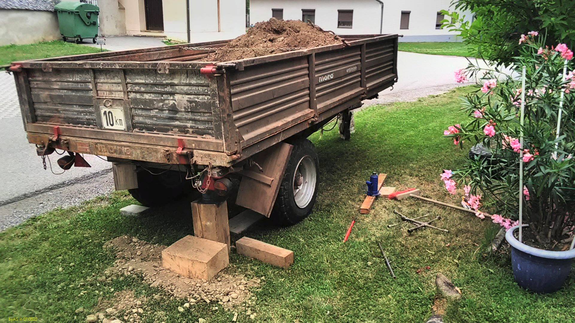 Gestern ist mir aber (vor lauter Kraft) der Schaufelstiel gebrochen, und ich musste den Rest abkippen, und muss jetzt noch mal mit der Heckkiste raus zum Planieren ...