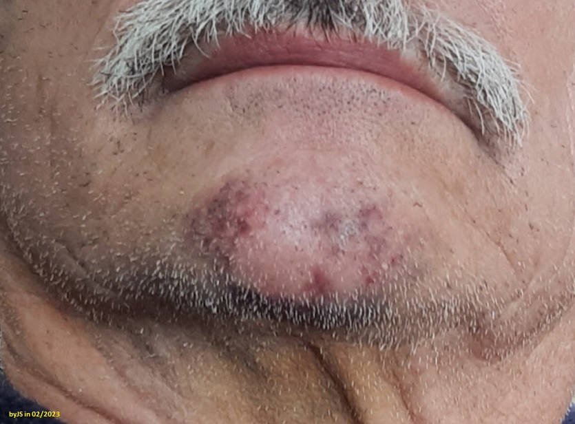 einen Keil in den Sägeschnitt trieb, und dieser aus dem gefrorenen Holz just gegen mein Kinn heraussprang. Ich hätte den Keil nur beim ersten Klopfer