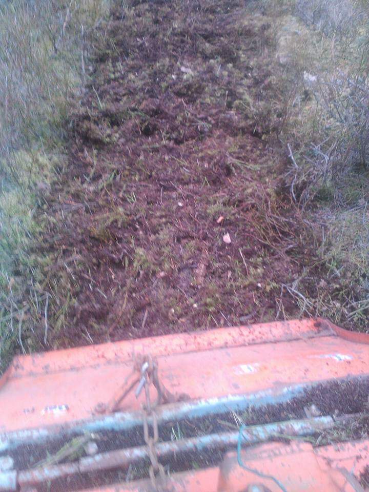 z.B. durch streifenförmige Bearbeitung mit einer "Dunghacke" oder Rechen.
