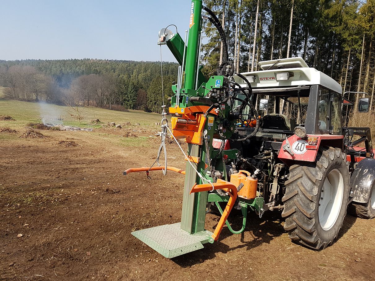 Zur Zeit arbeite ich mit einem alten 16 To ohne Stammheber, ohne Seilwinde.