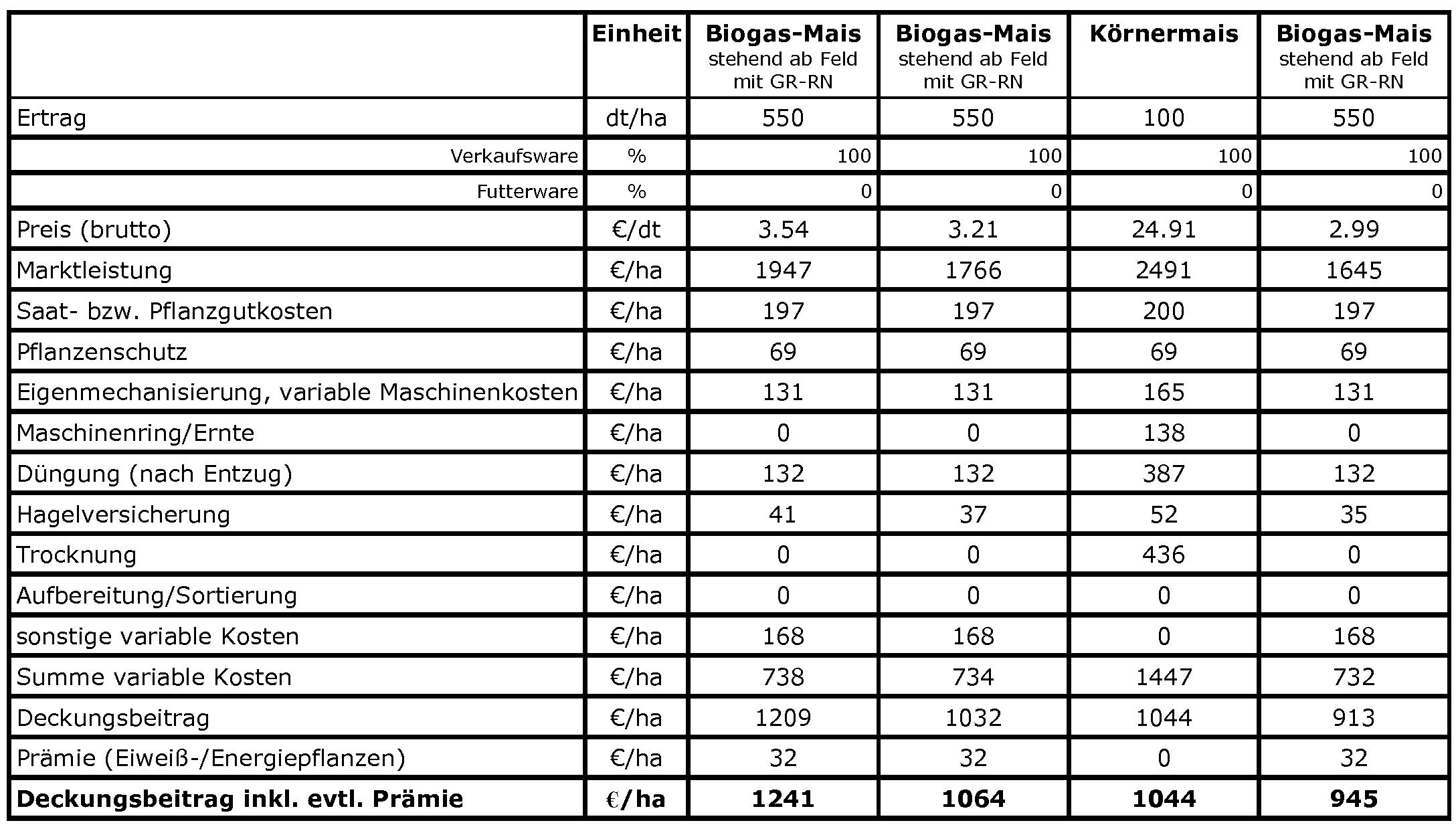 was wird den so pro Tonne Mais ab Feld bezahlt für die Verwendung in Biogasanlagen?