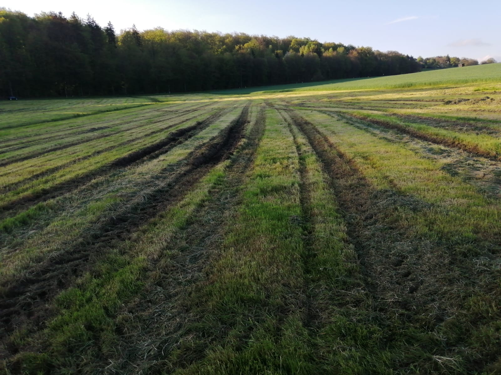 Hier entsteht Qualitätssilage für den größten Milchviehbetrieb weit und breit. Mähdatum 28.4. Weil das ein Profi ist, hat er als einziger gemäht. Und nein, ich habe nicht die eine Wiese fotografiert, wo er halt etwas Pech hatte...