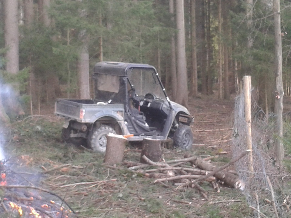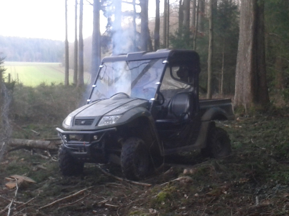 Ein Gedanke: Ein Quad mit Allrad, Schneeschiebeschild und Koffer sowie Anhängekupplung.