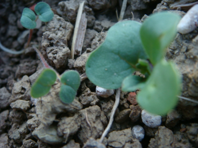 (Im ersten Bild die beiden Pflanzen links, rechts ist natürlich eine Rapspflanze und Düngerkörner zum Größenvergleich)